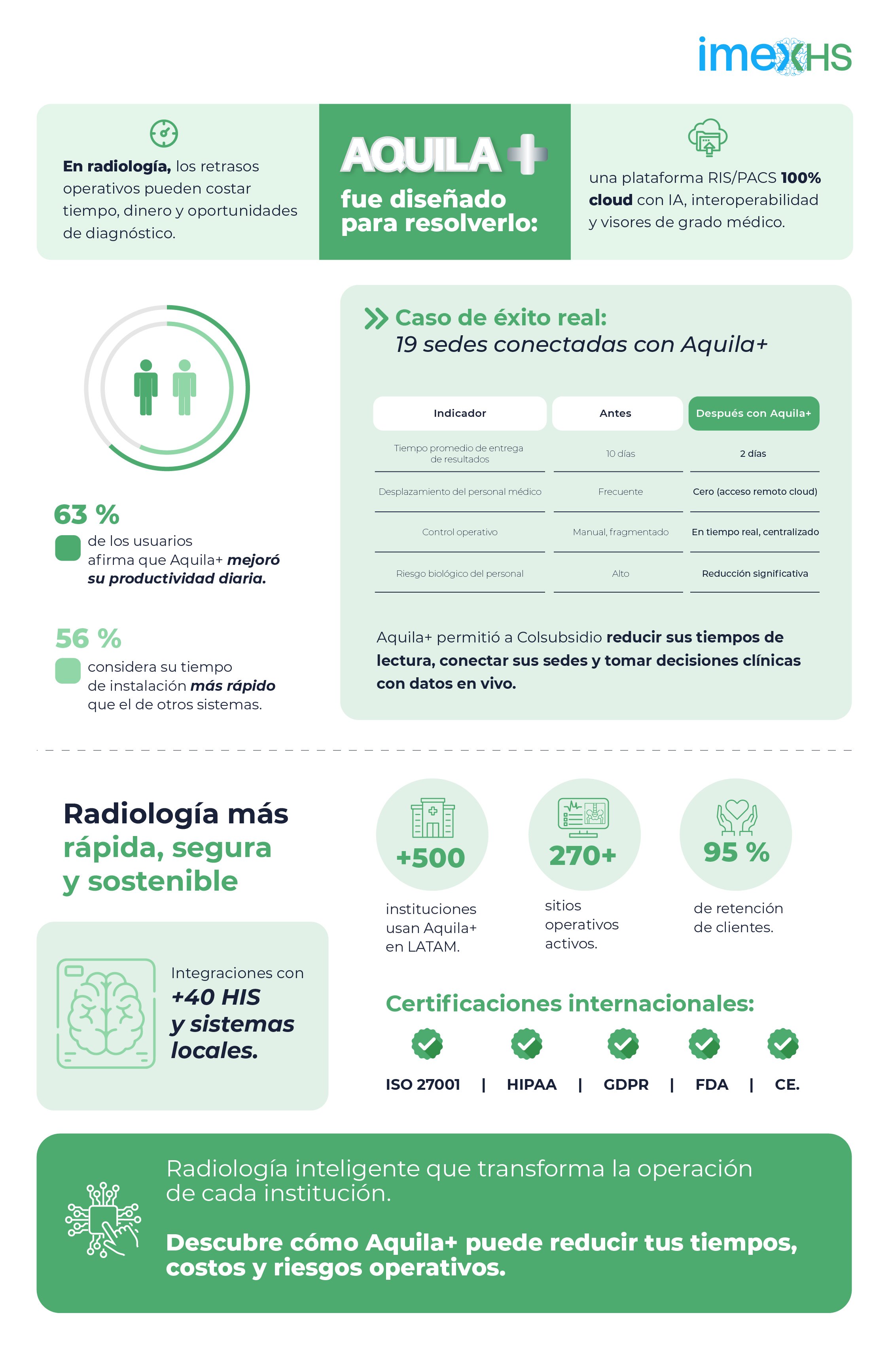 A medida que los centros de solo lectura y la teleradiología siguen creciendo, estas soluciones definirán el futuro del diagnóstico. Aquila+ se posiciona como líder en esta transformación, brindando a los radiólogos la tecnología necesaria para afrontar los retos actuales y futuros.
